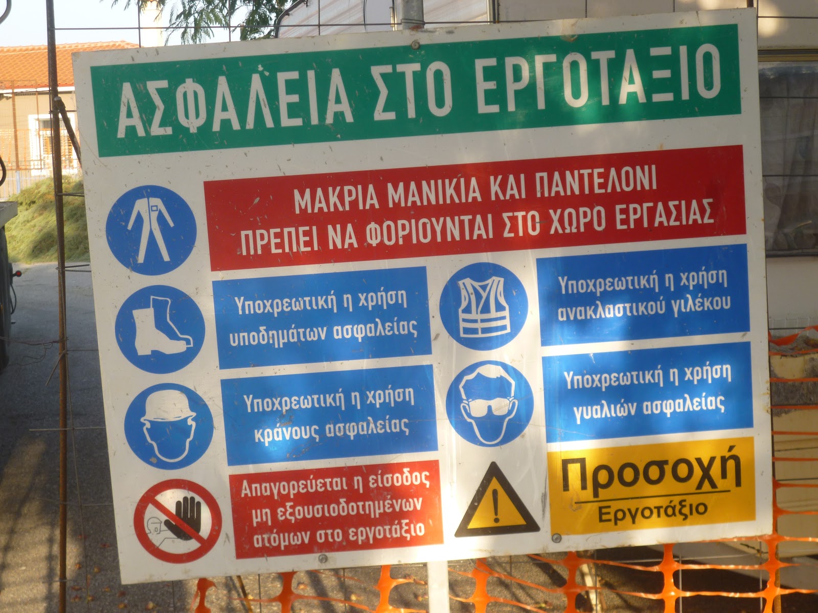 Ο χώρος του εργοταξίου έχει απομονωθεί με κατάλληλη περίφραξη, όμως επειδή κατά τις βραδινές ώρες πολλά παιδιά και έφηβοι μαζεύονται στον αύλειο χώρο του σχολείου μας, θα ήταν χρήσιμο για την ασφάλειά τους να μελετήσουν την πινακίδα και η αστυνομία στο πλαίσιο των αρμοδιοτήτων της να ελέγχει τον χώρο γύρω από το σχολείο.