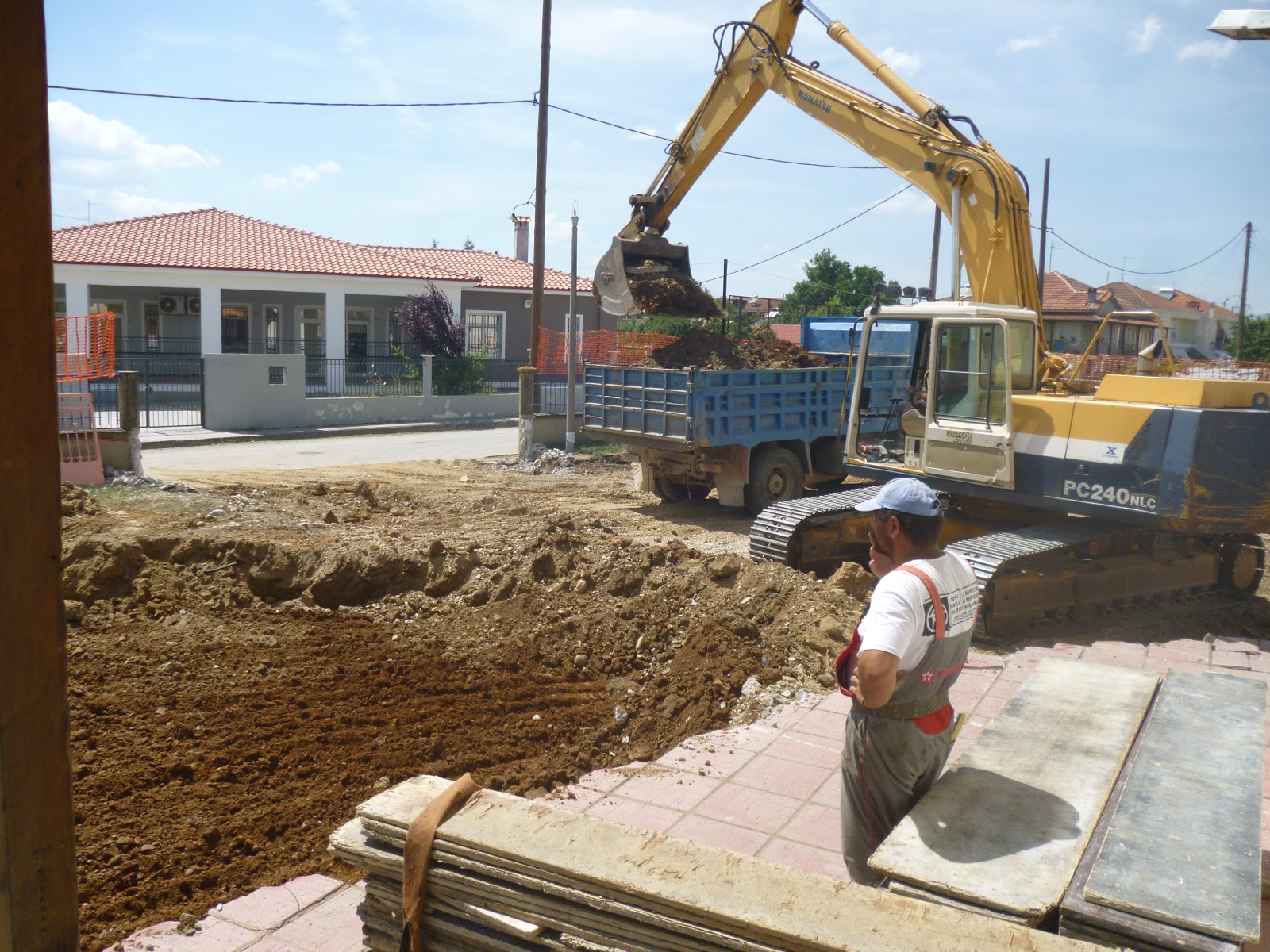 Από νωρίς το πρωί ο αεικίνητος Παύλος Μιχαηλίδης, ένας εκ των δύο ιδρυτών της Κοζανίτικης εταιρείας επέβλεπε τις χωματουργικές εργασίες, δίνοντας λεπτομερείς οδηγίες στον συμπολίτη μας, Παναγιώτη (Γιώτη) Σιδέρη, ο οποίος θα αναλάβει τα μπετά του έργου.