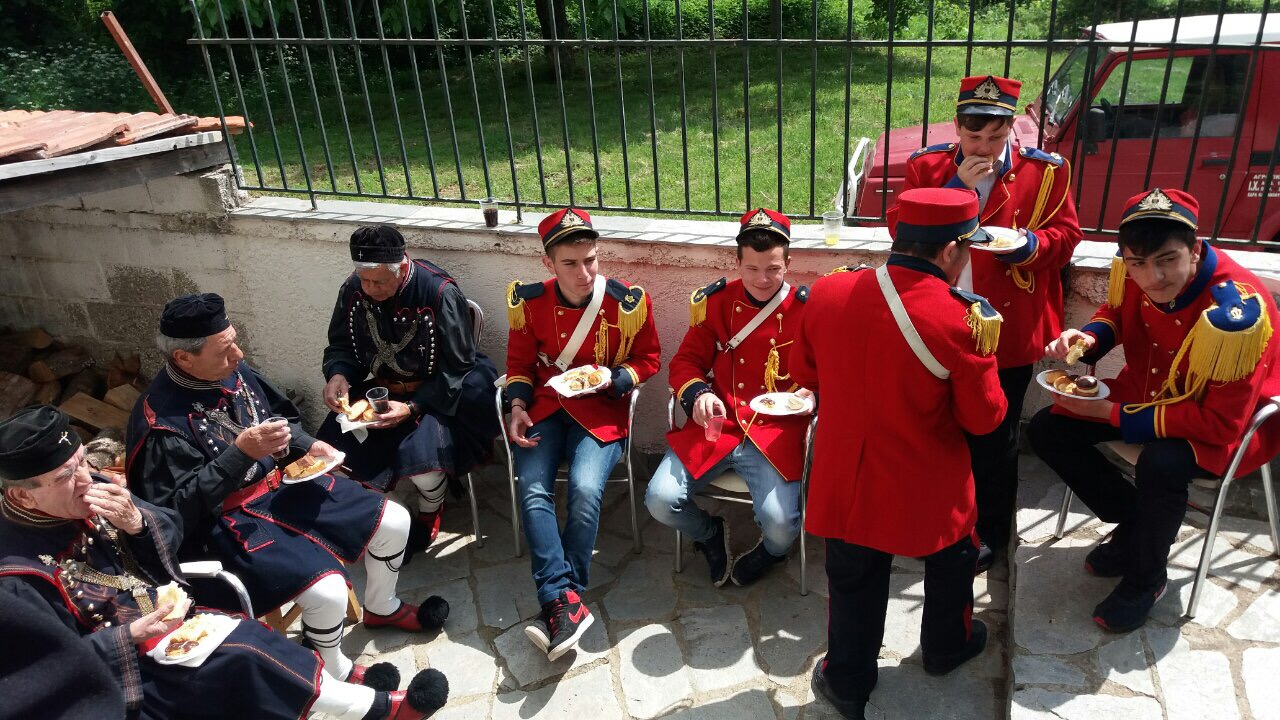 Παράθεση δεξίωσης δόθηκε στον αύλειο χώρο του Κοινοτικού Καταστήματος όπου οι παρευρεθέντες δοκίμασαν τοπικά εδέσματα φτιαγμένα από τις γυναίκες του χωριού.