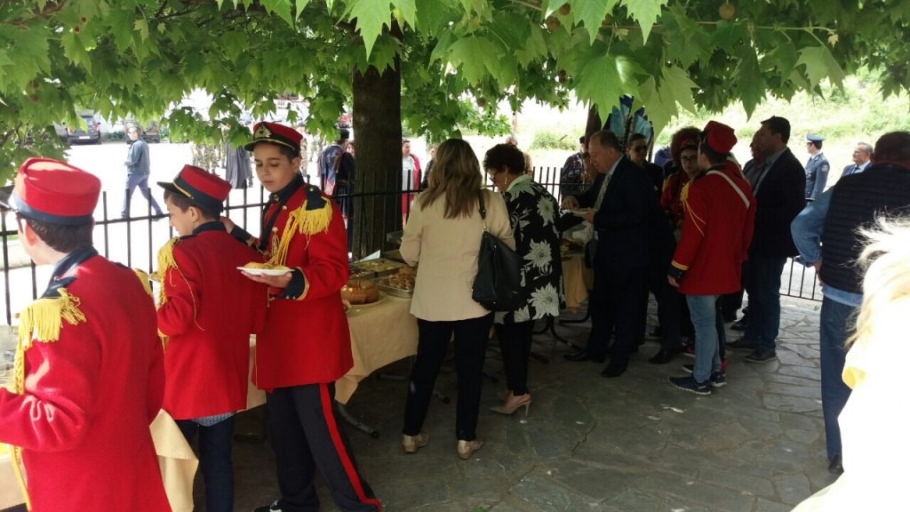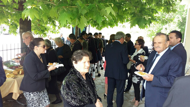 Παράθεση δεξίωσης δόθηκε στον αύλειο χώρο του Κοινοτικού Καταστήματος όπου οι παρευρεθέντες δοκίμασαν τοπικά εδέσματα φτιαγμένα από τις γυναίκες του χωριού.