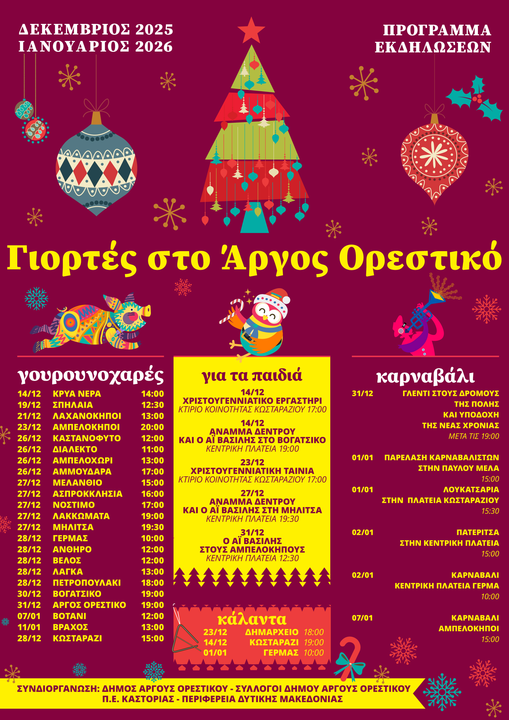 Με γουρουνοχαρές, χριστουγεννιάτικες δράσεις για τα παιδιά, κάλαντα, και φυσικά… Αργείτικο Καρναβάλι! 🎅🎶🎭